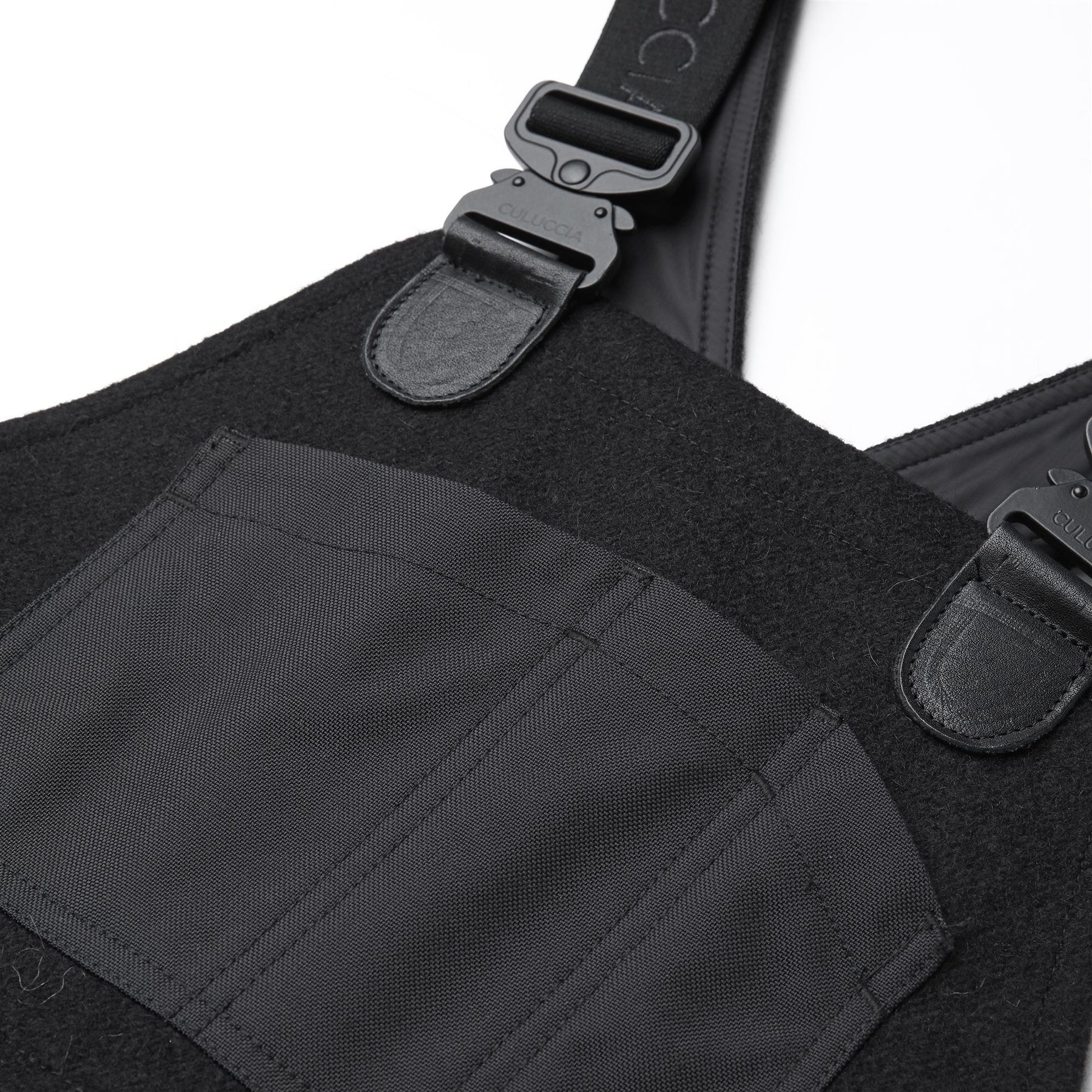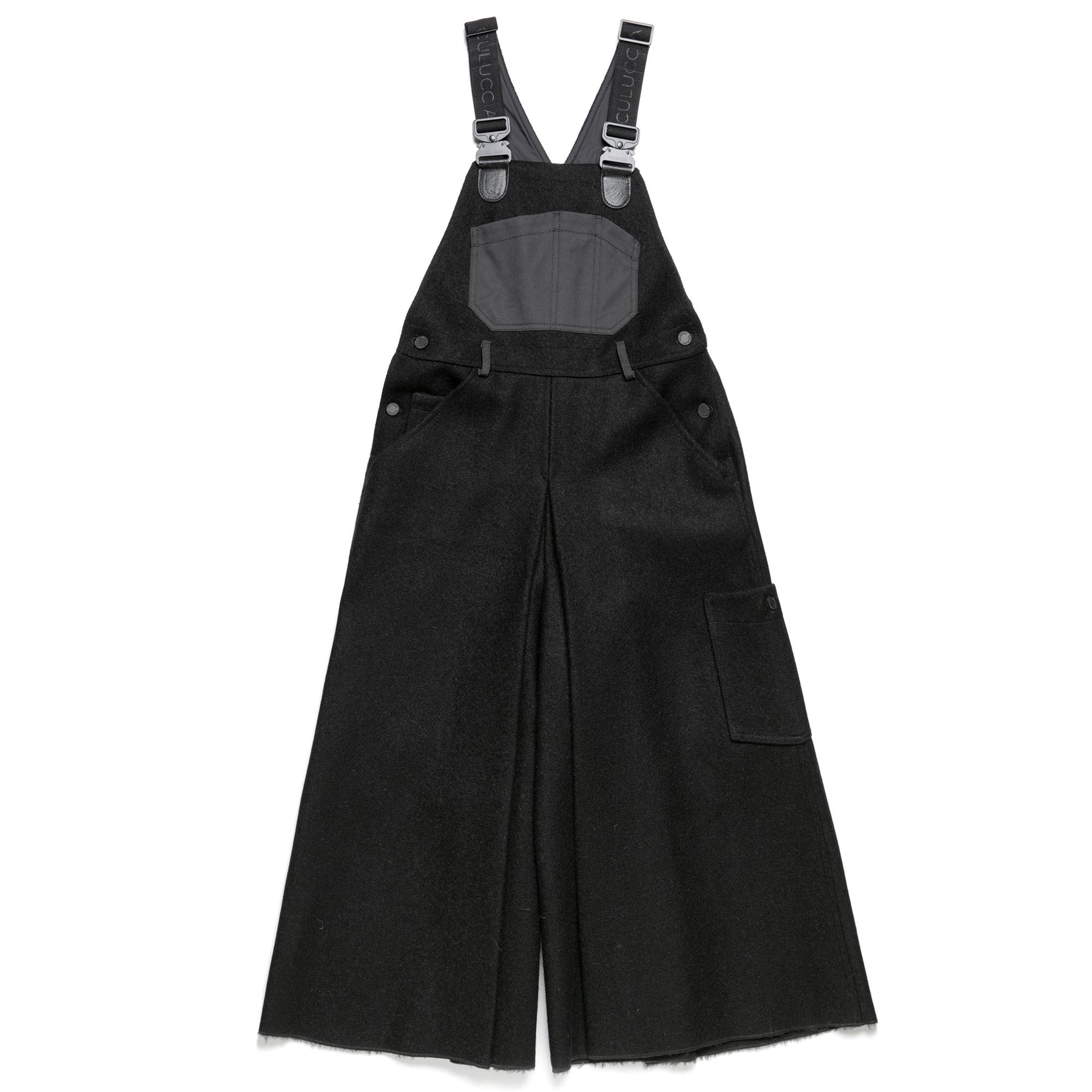 From workwear to a symbol of casual style, the story of overalls continues to evolve, interpreting the philosophy of the Culuccia® brand. The model features a feminine design with a wide pant skirt. Made from pure Sardinian wool fabric, it is naturally water-repellent and thermal-resistant, lined with cotton for added comfort. The Cordura® nylon details on the bib and waist ensure durability, while the adjustable elastic suspenders provide a customizable fit. It has applied pockets with custom rivet buttons. Internally personalized with a QR label woven on jacquard, allowing deeper insight into the garment's project and identity.