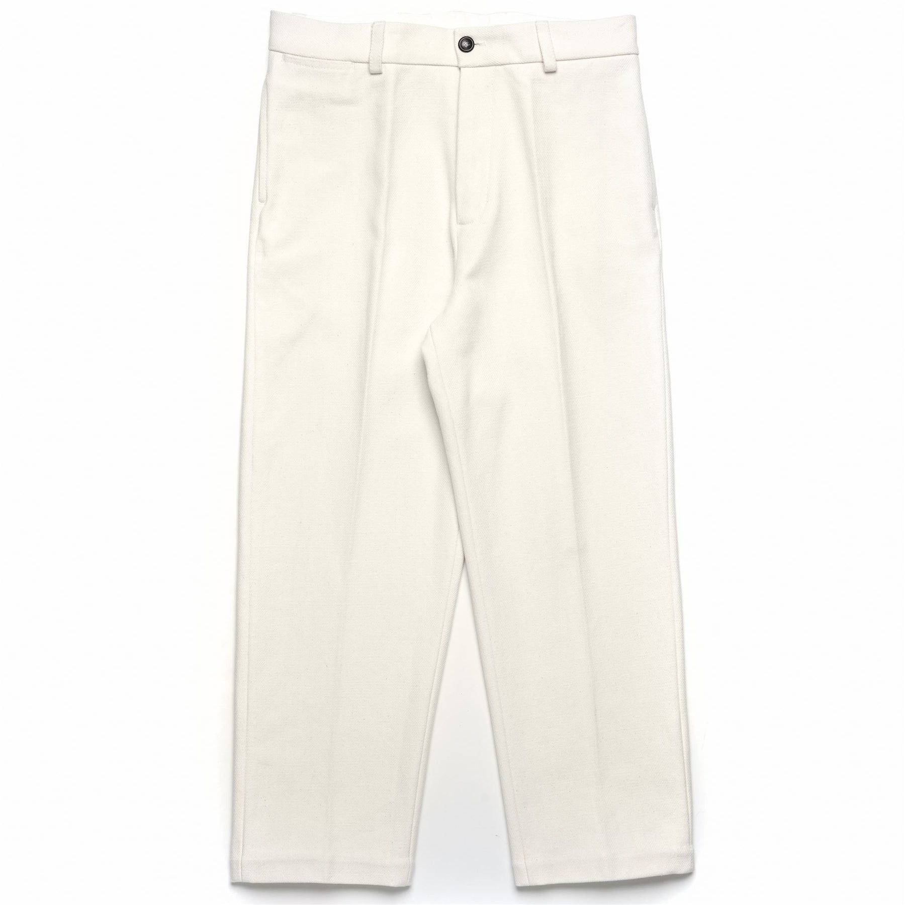 Chino pants are reinterpreted for outdoor activities. The model features a classic tailored-inspired line with a soft leg that slightly narrows at the bottom. It is finished with side welt pockets, a watch pocket, and buttoned back pockets. The garment is made from Peoprache, a pure cotton Batavia weave typical of island culture. The back strap allows for an adjustable fit, while the hem is reinforced with tape for increased wear resistance. Internally personalized with a QR label woven on jacquard, allowing for deeper insight into the garment's project and identity.