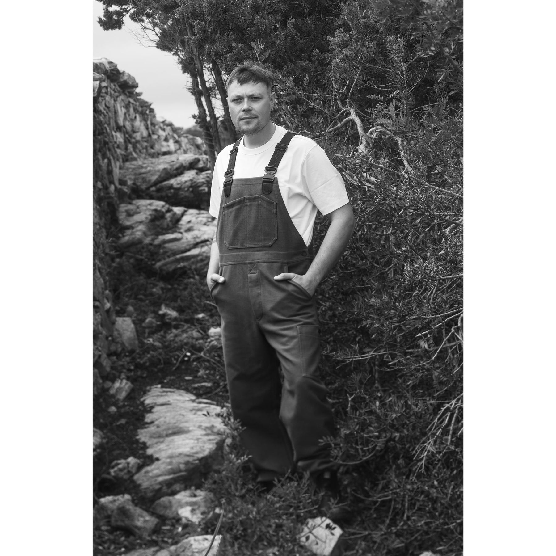 Practical and functional, the overall is a workwear symbol that emerged in the second half of the 19th century as a work garment, later reinterpreted in a casual style starting in the 1960s. made from Peoprache, a Batavia weave typical of island culture. The bib and trousers feature multi-purpose applied pockets. The suspenders are elastic and adjustable to fit the desired size. The waist is adjustable with customized stud buttons. The bottom of the trousers is reinforced for increased wear resistance. Internally customized with a QR label crafted on a jacquard loom, allowing for further exploration of the garment's design and identity.
